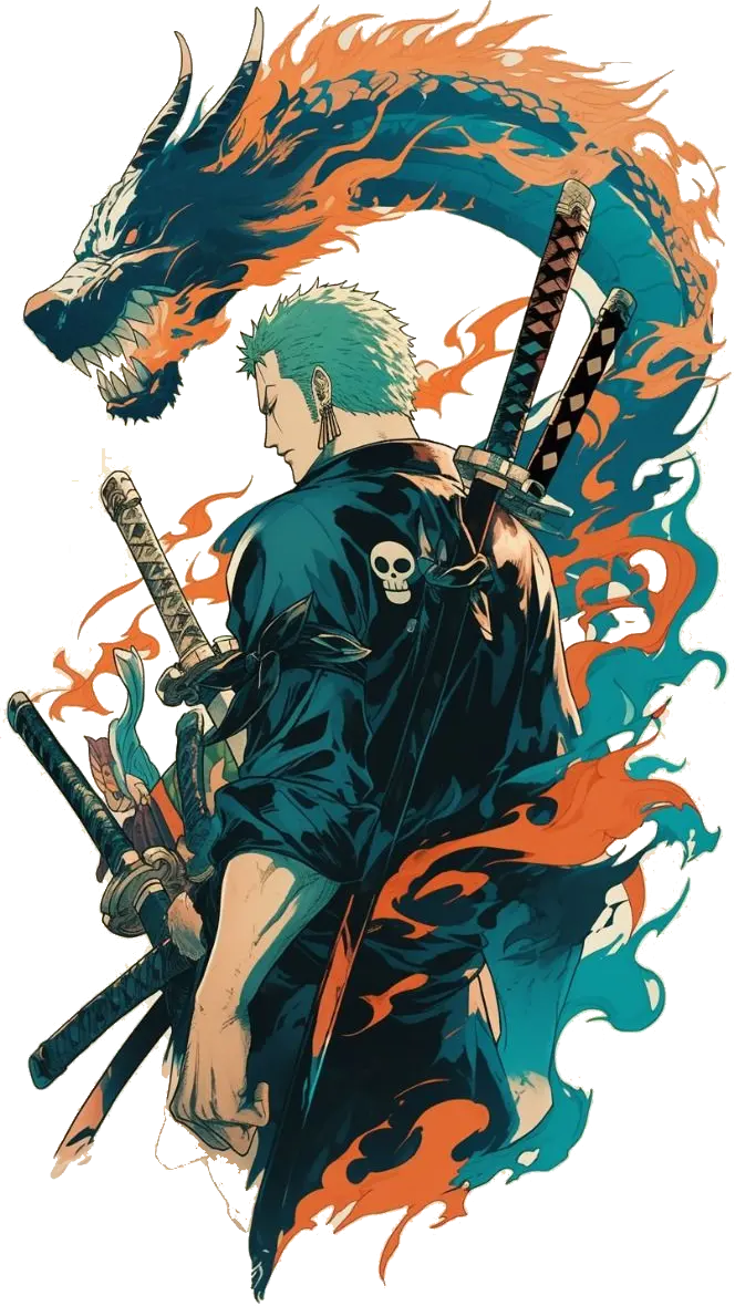 Iconic Zoro Artwork – Striking print featuring the legendary swordsman.